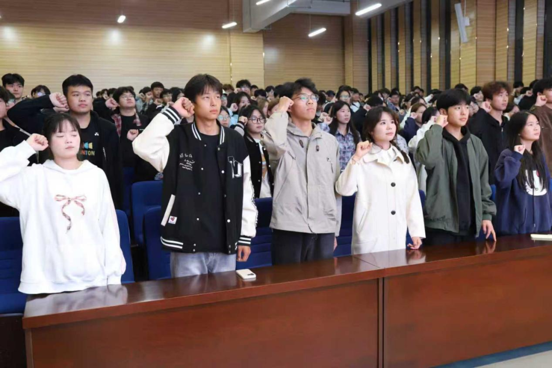 随后,学生干部代表宋佳豪带领全体学生干部庄严宣誓,铿锵誓言响彻会场,既彰显了学生干部的责任担当,也展现了新时代青年的昂扬风貌。