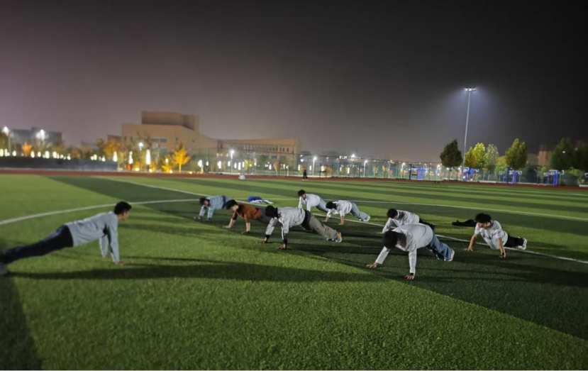 体能训练是军事类社团的核心活动之一。本次训练围绕“基础体能强化”展开,分为跑步与上肢训练两个模块:跑步训练采用“分组慢跑+冲刺间歇”模式,既锻炼成员的耐力,也提升爆发力;