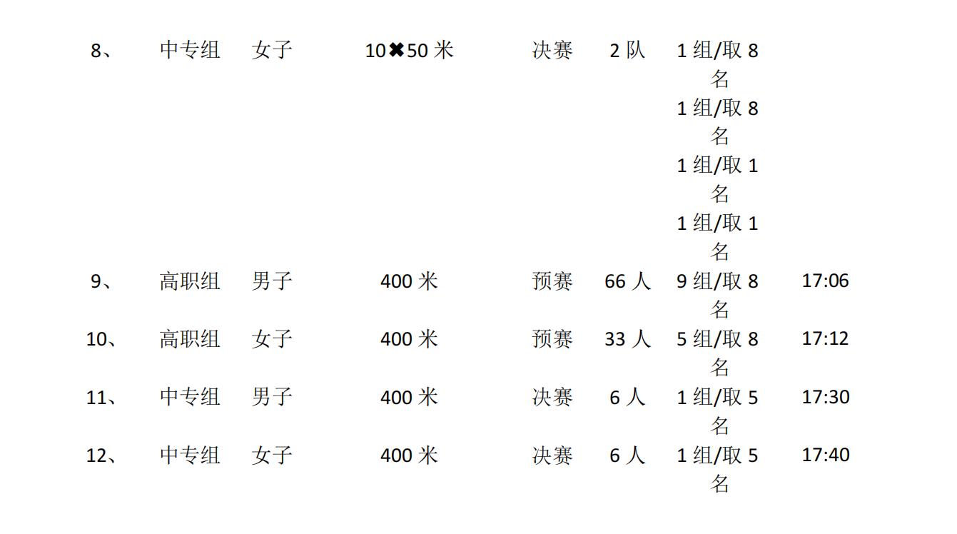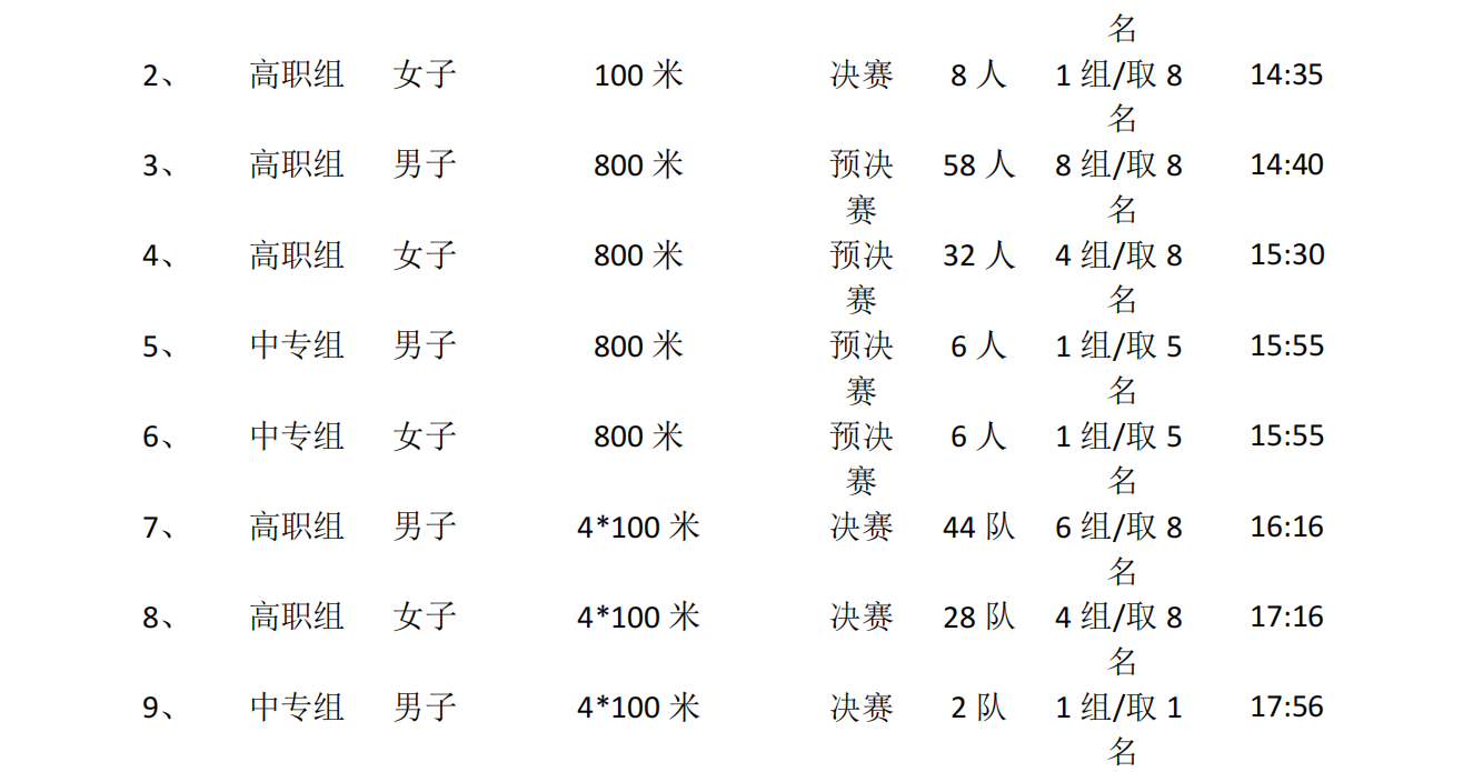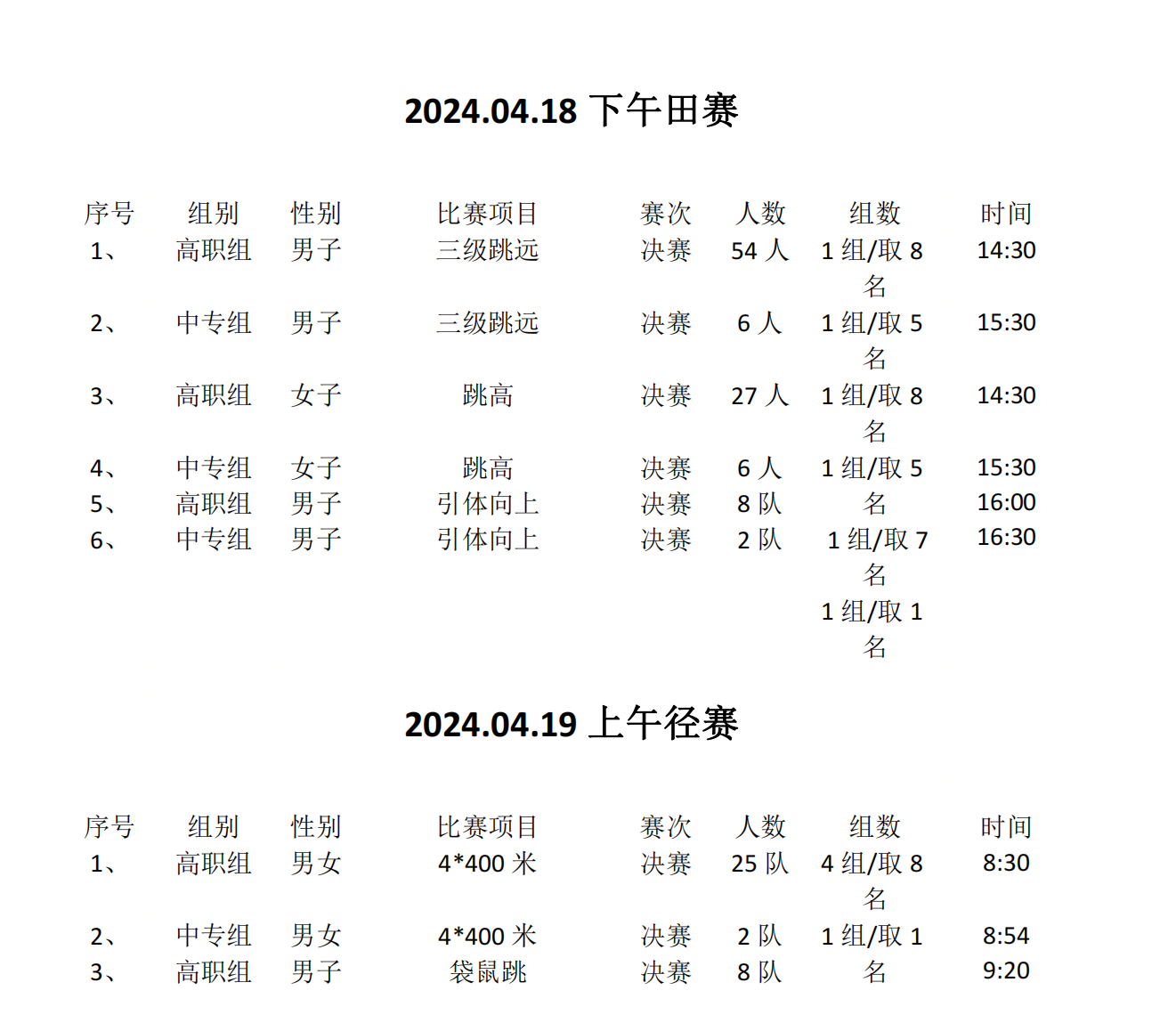 三门峡职业技术学院2024年大学生运动会竞赛日程