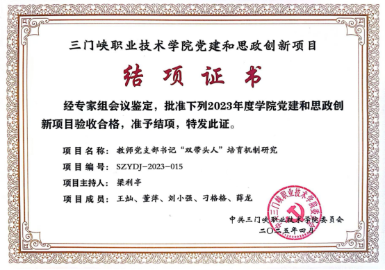 在金师资建设方面,支部党员教师中涌现出河南省学术带头人1人、河南省职业院校省级名师3人、省级骨干教师9人、河南省职业教育“双师型”教师19人。他们积极指导学生竞赛,在河南省高等职业教育技能大赛多个赛项中获得一等奖3项、二等奖6项,在“一带一路”暨金砖国家技能发展与技术创新大赛中获得国家级二等奖1项、三等奖2项。