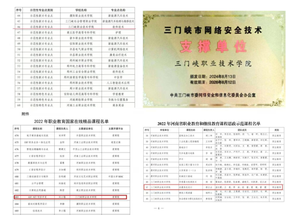 在金专业建设方面,软件技术专业成功获批河南省职业教育示范性新兴专业点,计算机应用技术专业入选教育部中德先进职业教育合作(SGAVE)项目,信息安全与技术应用专业获三门峡市委网信办授牌成为网络安全支撑单位。同时,学院积极加入全国人工智能通识教育产教融合共同体,拓展专业发展平台。