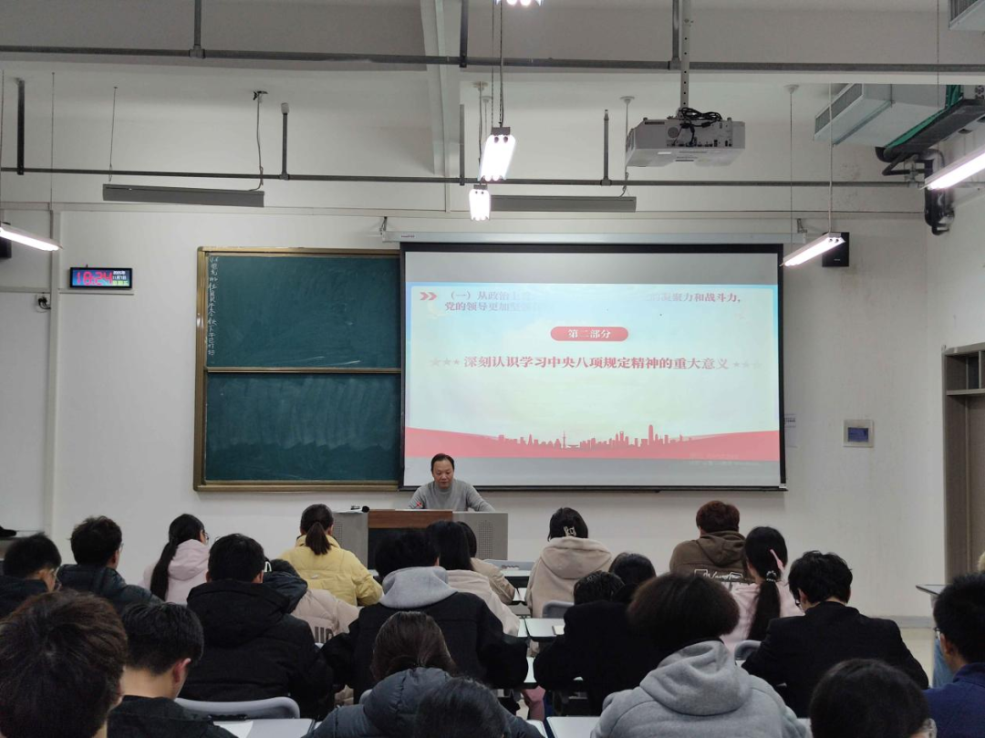 开班仪式结束后,刘学文以《学党纪、明规矩、强党性,自觉做守纪律讲规矩的表率》为题讲授专题党课。课程系统梳理中央八项规定的发展脉络,从人民军队"三大纪律八项注意"的优良传统切入,深入解读中央八项规定的具体条文,深刻阐释其精神内核。针对青年学生提出实践路径——勤学不辍筑根基、深学细悟促提升、知行合一强实践,要求学员在理论学习中淬炼党性修养,在实践中弘扬节俭美德,以“慎独”精神严守纪律底线,让青春奋斗与党的初心使命同频共振,在新时代作风建设新征程中书写青春华章。