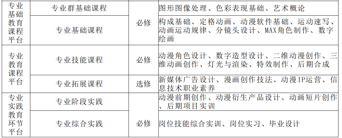专业拓展课程:新媒体广告设计、漫画创作技法、动漫IP运营、信息技术职业素养